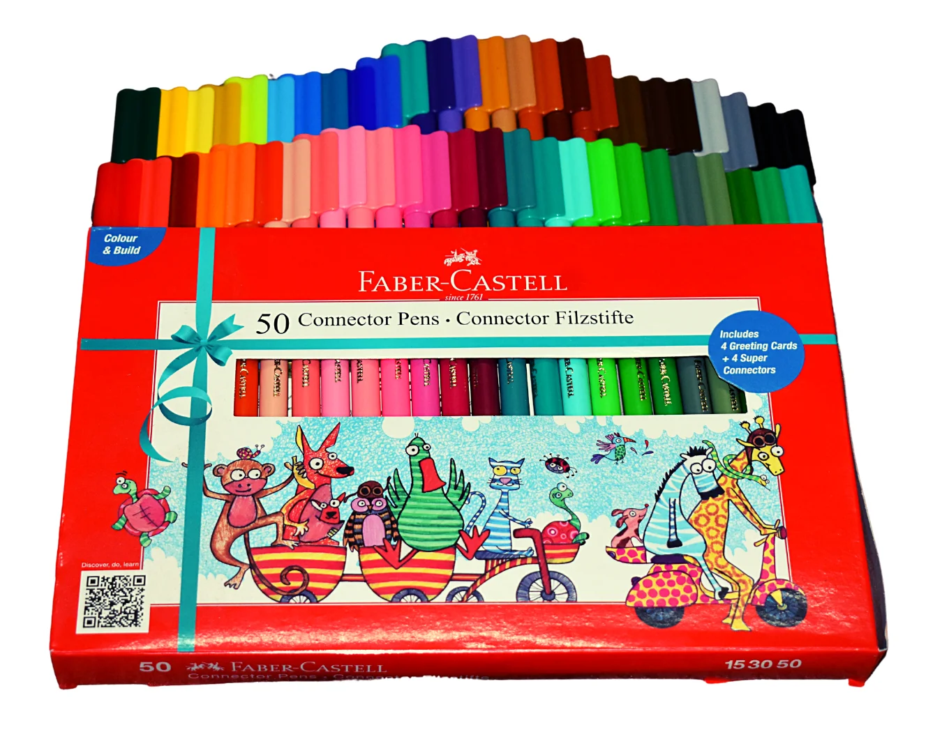 أقلام فابر كاستل كونيكتور (Faber-Castell Connector Pens)هي مجموعة أقلام تلوين معروفة يمكن شبك أغطيتها معاً لإنشاء نماذج وأشكال مختلفة. المجموعة المعروضة في الصورة تحتوي على 50 لوناً.