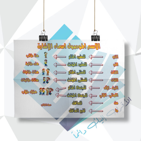 لوحة مدرسية عن الاسم الموصول اسماء الاشارة