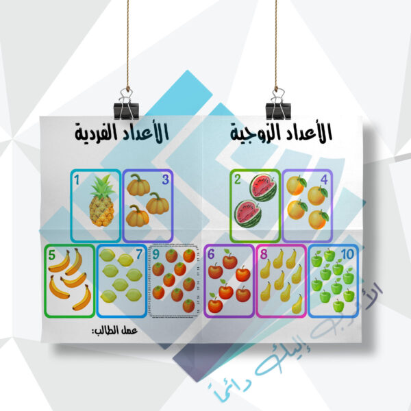 لوحة مدرسية عن الاعداد الزوجية والفردية فواكه