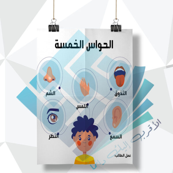لوحة مدرسية عن الحواس الخمسة
