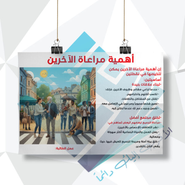 لوحة مدرسية عن اهمية مراعاة الاخرين