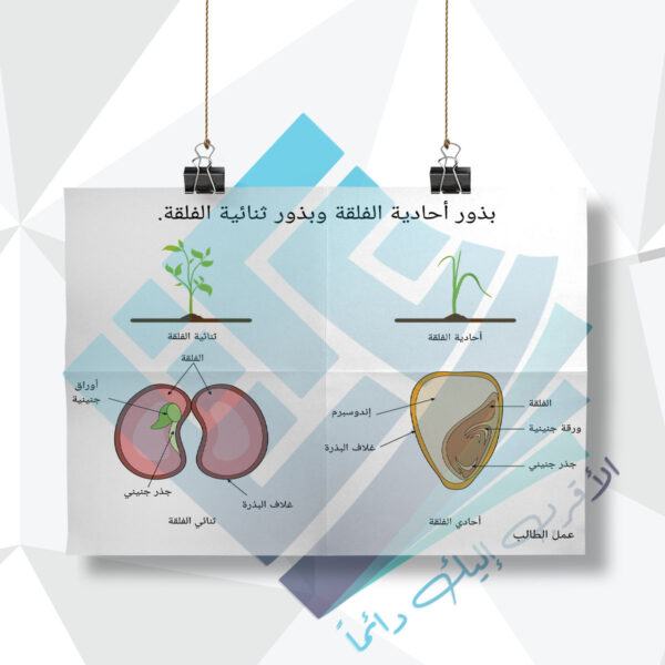 لوحة مدرسية عن بذرة احادية وثنائية الفلقة