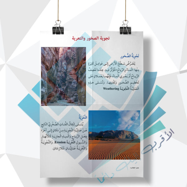 لوحة مدرسية عن تجوية الصخور والتعرية
