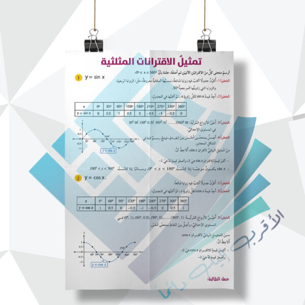 لوحة مدرسية عن تمثيل الاقترانات المثلثية