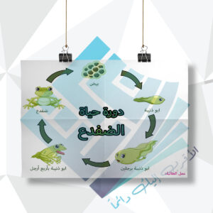 لوحة مدرسية عن دورة حياة الضفدع