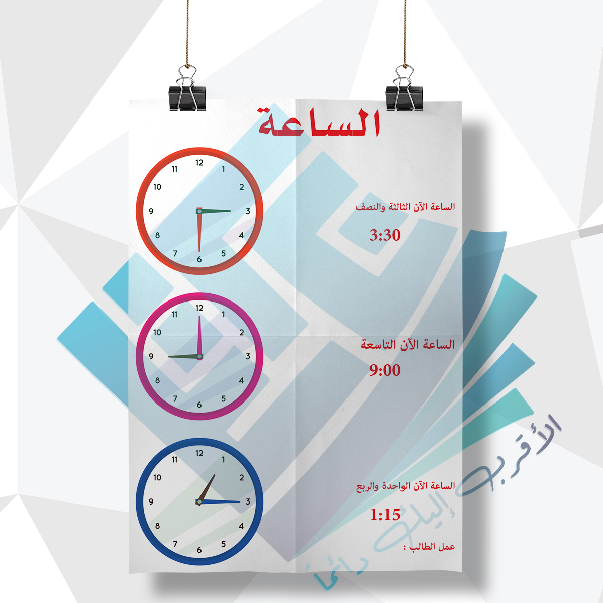 لوحة مدرسية عن الساعة الرقمية